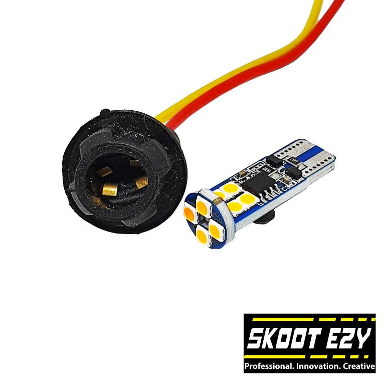 A "T10" or T-10 is a tubular bulb that is ten eighths (10/8) of an inch in diameter or 1.5" inches. Skoot Ezy has them available in 3 colors: Orange, Red, and White.